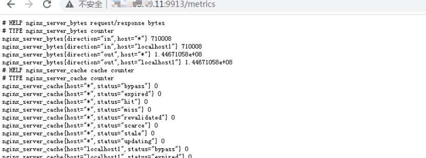 访问http://ip/status出现以下显示则表示nginx与nginx-vts-exporter安装成功。