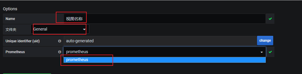 选择上文配置好的数据源,prometheus选项就是上文配置的数据源。