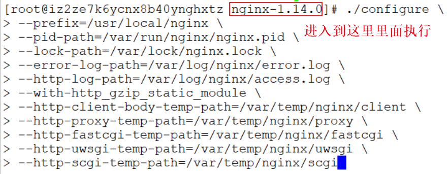执行下面的命令的时候,一定要进入到nginx-1.14.0目录里面去。