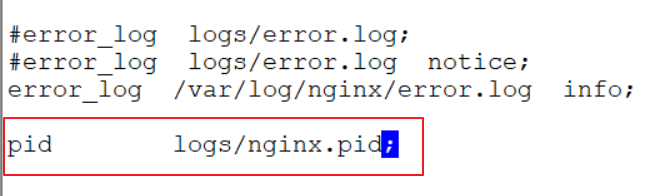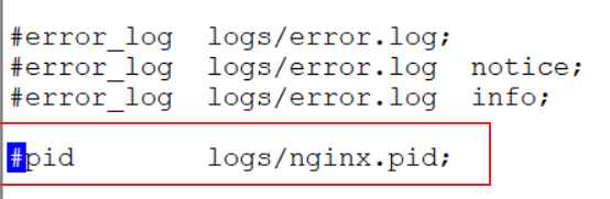在配置文件中找到:#pid logs/nginx.pid;