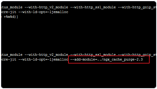 4、安装完成后,再次nginx -V你就可以看到Nginx已经成功编译进了ngx_cache_purge 了。