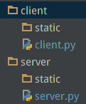 编写client和server的python文件,使其分别跑在5000端口和5001端口: