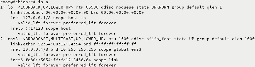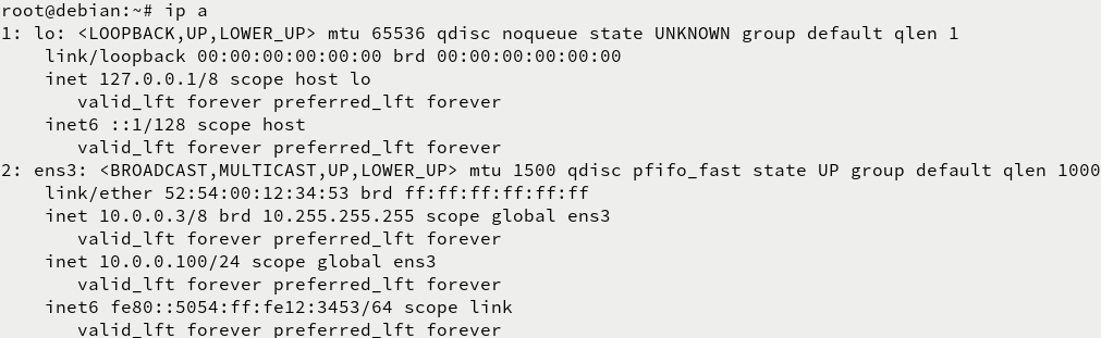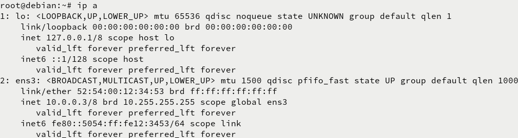 root@debian:~# ifup ens3 |
