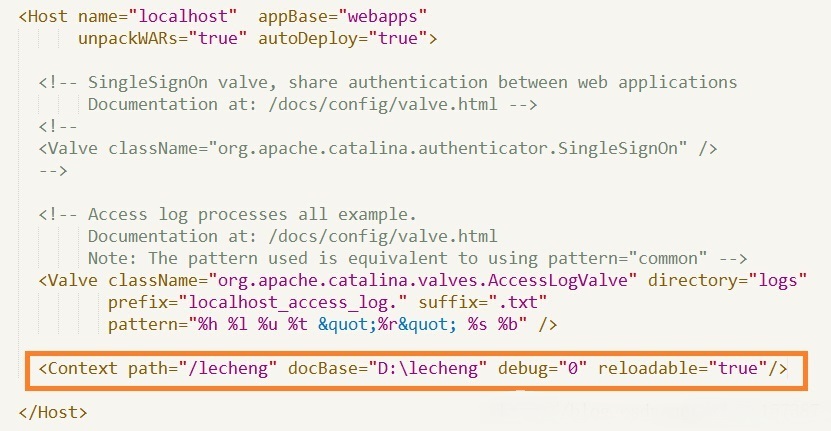 docbase:指定web应用的文件路径,可以给定绝对路径,也可以给定相对于<host>的appbase属性的相对路径,如果web应用采用开放目录结构,则指定web应用的根目录,如果web应用是个war文件,则指定war文件的路径。