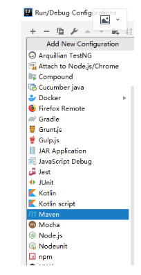 2.选择绿色的“+”号往下拉找到“maven”这个选项点进去。