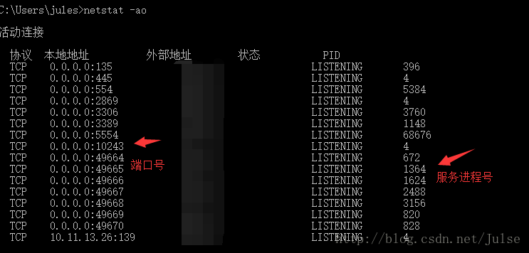 netstat-ao:显示活动连接(展示端口号和对应进程号)