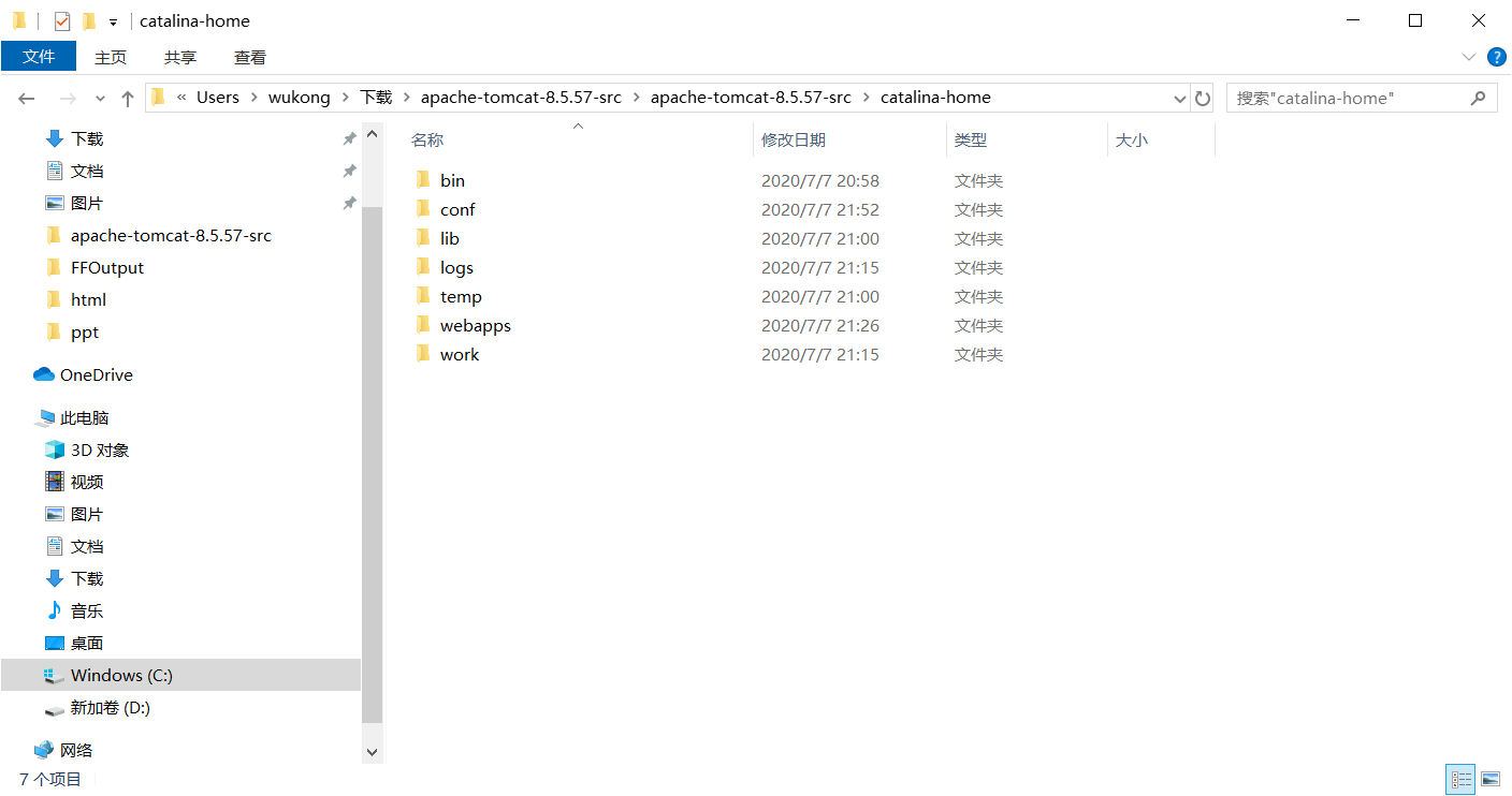 3.在apache-tomcat-8.5.57-src 同级目录新建 catalina-home并保证目录下面文件如下