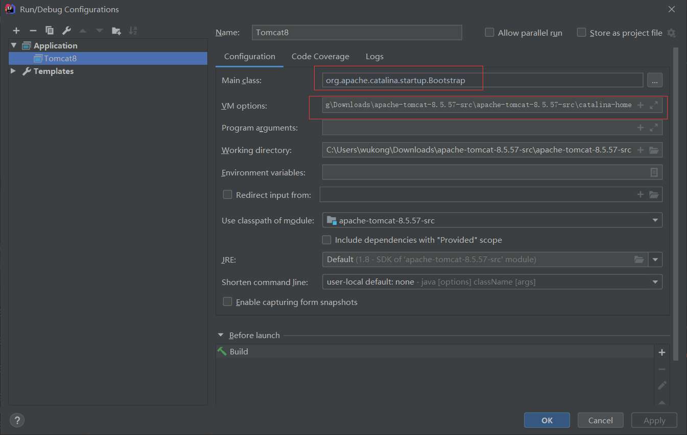 mainclass: org.apache.catalina.startup.bootstrapvmoptions: -dcatalina.home=c:\\users\\wukong\\downloads\\apache-tomcat-8.5.57-src\\apache-tomcat-8.5.57-src\\catalina-home