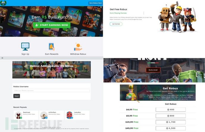 对于《Roblox》玩家,诈骗者通常会提供免费赚取、生成或获得一些Robux(《Roblox》中的游戏货币)。与《Apex传奇》的例子类似,如果用户试图提取“赚到的”或生成的钱,他们就必须在一个欺诈网站上付款。