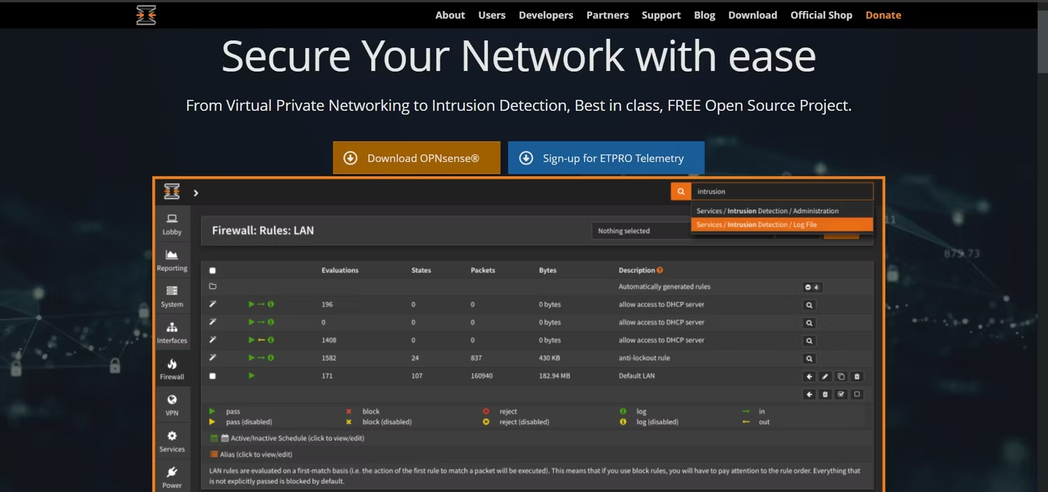 OPNsense 的一些旗舰功能包括深入分析网络数据包、过滤 Web 流量以及使用内联入侵检测系统 (IDS) 应对外部威胁的能力。
