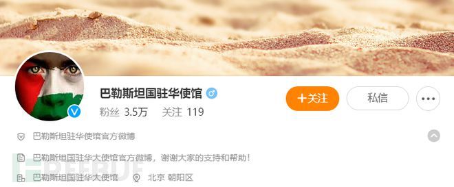 这也是巴勒斯坦在中国社交网络上的唯一一个官方机构账号。