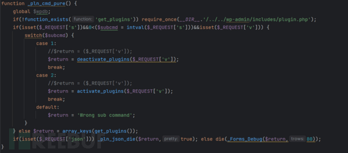 - 插件控制:恶意软件操作员可以远程激活或停用被入侵网站上的任意 WordPress 插件。不仅如此,恶意软件还会清除网站数据库中的痕迹。