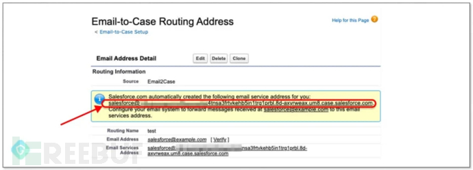 具体来说就是攻击者设置一个新的 “Email-to-Case ”流程,以获得对 Salesforce 生成的电子邮件地址的控制权,之后在 “salesforce.com ”域上创建一个新的入站电子邮件地址。