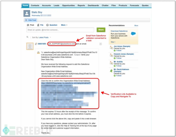 整个过程允许网络攻击者使用自有的 Salesforce 电子邮件地址向任何人发送信息,从而绕过 Salesforce 的验证保护以及任何其它电子邮件过滤器和反钓鱼系统。