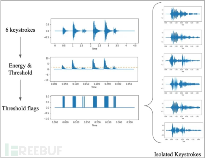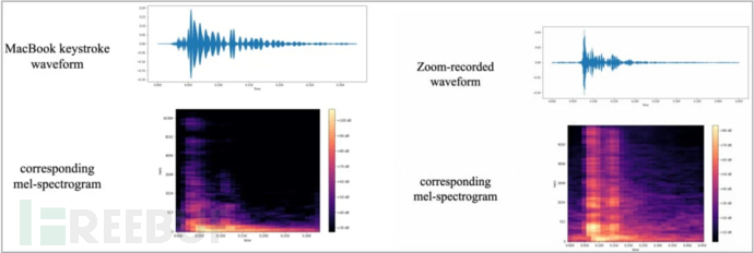 因为训练算法的需要,攻击的第一步要记录目标键盘上一定次数的击键声音,录音设备可以是附近手机内的麦克风,此时,该手机可能已经感染可调用麦克风权限的恶意软件,或者可通过ZOOM等会议软件,利用远程会议等渠道记录目标的键盘击键声音。