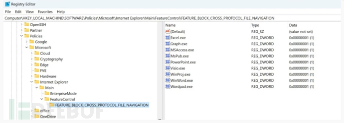 设置FEATURE_BLOCK_CROSS_PROTOCOL_FILE_NAVIGATION注册表项(图源:Microsoft)