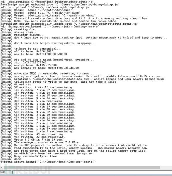 kd> !bdump_active_kernel \"C:\\\\Users\\\\john\\\\Desktop\\\\state\"