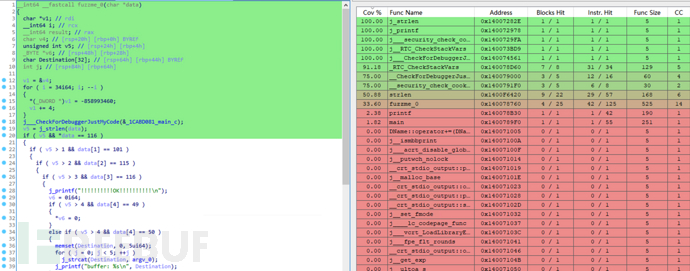 随后在 IDA 中加载wtf_test.exe文件,并使用 lighthouse 插件加载覆盖率文件如下: