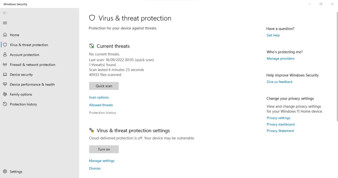 接着,您应该运行Microsoft Defender的脱机扫描。请记住,完整的病毒扫描可能需要一个多小时,因此请务必耐心等待其完成。在此之后,您可以通过Windows Security检查是否仍会再次报告威胁。如果仍有报告的话,则需要使用第三方的防病毒应用去进一步查杀恶意软件。