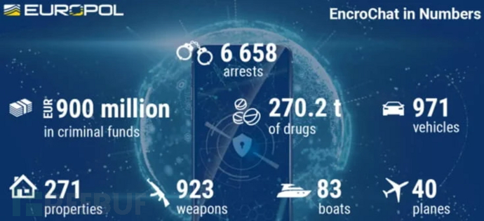 2020 年,欧洲各国成立的联合执法队伍悄悄渗透到 EncroChat 平台,成功破解加密算法后,分析出其用户之间共享的数百万条消息。此后,法国和荷兰的警察部队与其它国家的同行合作,逮捕了 6558 名EncroChat 用户,其中包括 197 名“高价值目标”。