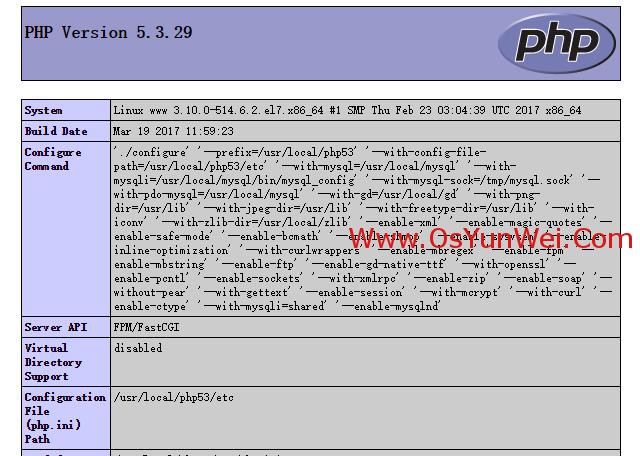 centos 7.x +php 5.3组合建议使用gd-2.0.35进行编译,php驱动包括mysql,mysqli(需要加载),mysqlnd