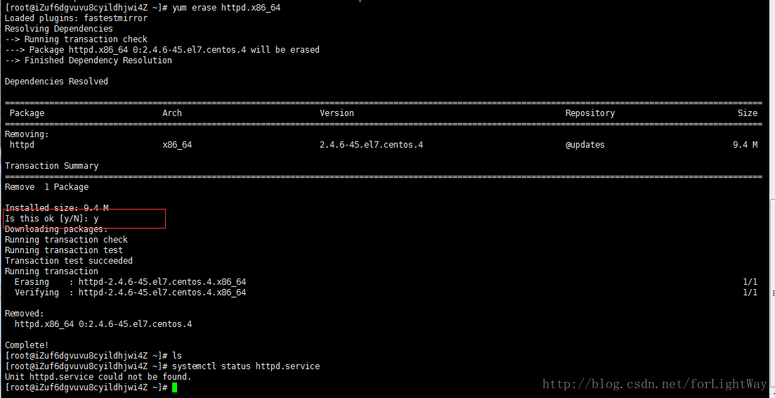 中间会问一下是否确认,y就可以了,直到出现Complete! 代表卸载完成了。