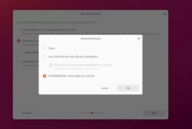 Canonical 早前推出了基于 Flutter 的新版 Ubuntu Linux 桌面安装程序时,但并不支持 ZFS 根文件系统安装,而在 Ubuntu 23.10 桌面安装程序的高级磁盘选项中,这一安装到 ZFS 的选项已经恢复。