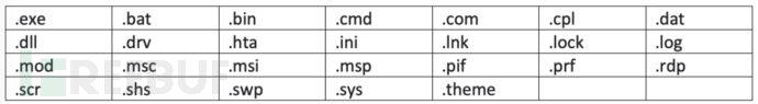 不加密扩展名列表