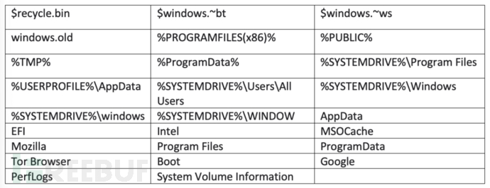 勒索软件对系统上的文件进行加密,并将扩展名修改为随机十个字符的大写字母。勒索软件会避免加密以下文件扩展名: