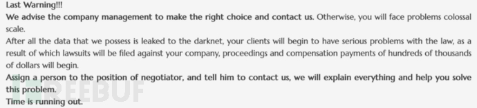 如果受害者不答应勒索要求,攻击者就会不断增加最新消息。例如: