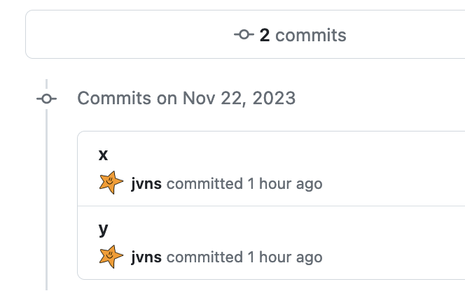 我猜想许多人可能会这样理解 Git 分支:在下图中,两个红色的提交就代表一个“分支”。