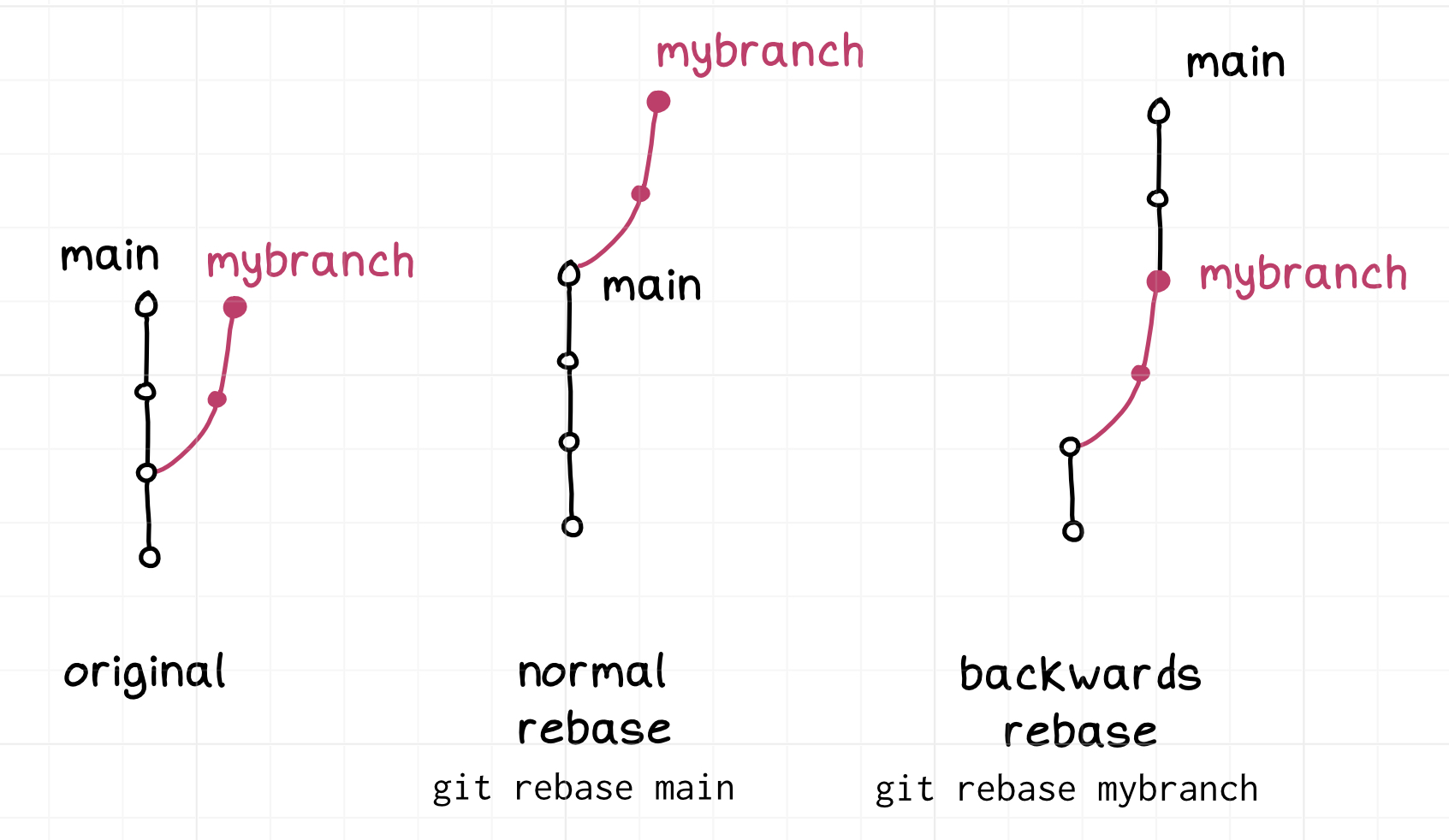 相似地,你可以进行“反向”的合并,尽管这相较于反向变基要正常得多——将mybranch