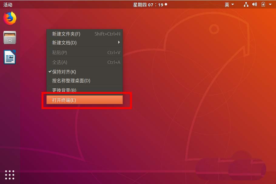 2、桌面上鼠标右键打开终端。
