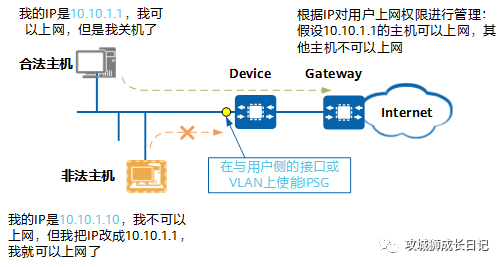 IPSG一般应用在用户侧的接入设备上,可以基于接口或者基于VLAN应用。