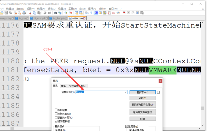 打开后,按Ctrl+F进行查找,在查找栏中输入Vmware: