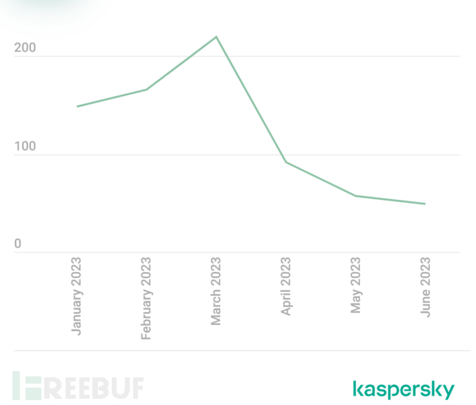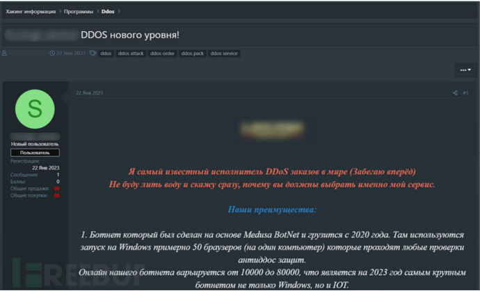 2023年上半年,卡巴斯基数字足迹情报服务分析人员在各种暗网论坛上发现了700多条DDoS攻击服务广告。