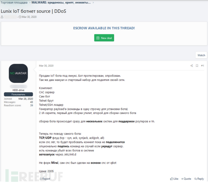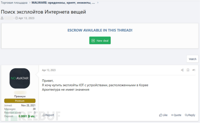 此外,暗网市场还提供针对物联网设备中的零日漏洞的漏洞利用程序,以及与基础设施和支持工具捆绑在一起的物联网恶意软件。