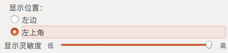 6、设置鼠标位置与灵敏度,鼠标激活启动器,有2种方式,左上角与左边,如果选择左上角,那么鼠标放到左边的时候,不会激活启动器,这个需要根据个人习惯设置,灵敏度越高,鼠标停留之后越快激活启动器。