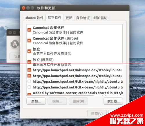 5、软件源添加后要检查一下所添加的软件源前面是否打了“√”,如果没打对勾的话是不会启用软件源的。