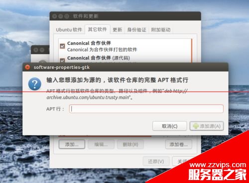 3、点击下方的“添加”按钮,接着就弹出一个添加软件源的对话框。