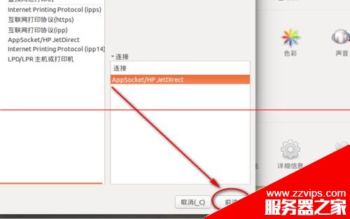 6、我们选择ubuntu系统为我们查找到并且“推荐”的打印机类型,然后点击“前进”
