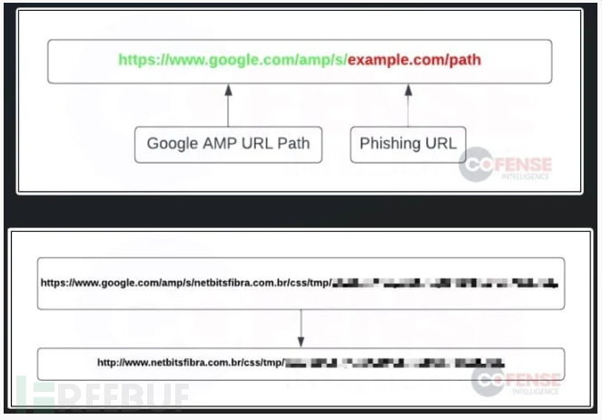 谷歌AMP重定向到钓鱼网站,图源:Cofense
