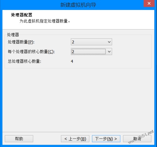 设置处理器的配置,这里需要看个人电脑配置,我是四核8线程的i7,这里就选了2*2,如果CPU核心数不多,就选择1*2
