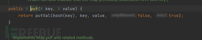 链子:HashMap类的put方法中调用了hash()方法->HashMap类的hash()方法中调用了hashCode()方法