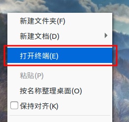 1、在ubuntu桌面上鼠标右键“打开终端”。