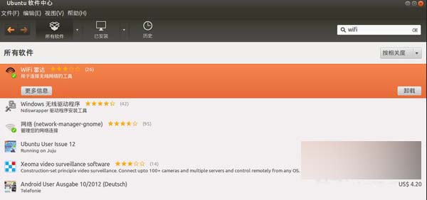 在软件中心输入“wifi”搜索,安装那个WiFi雷达软件。