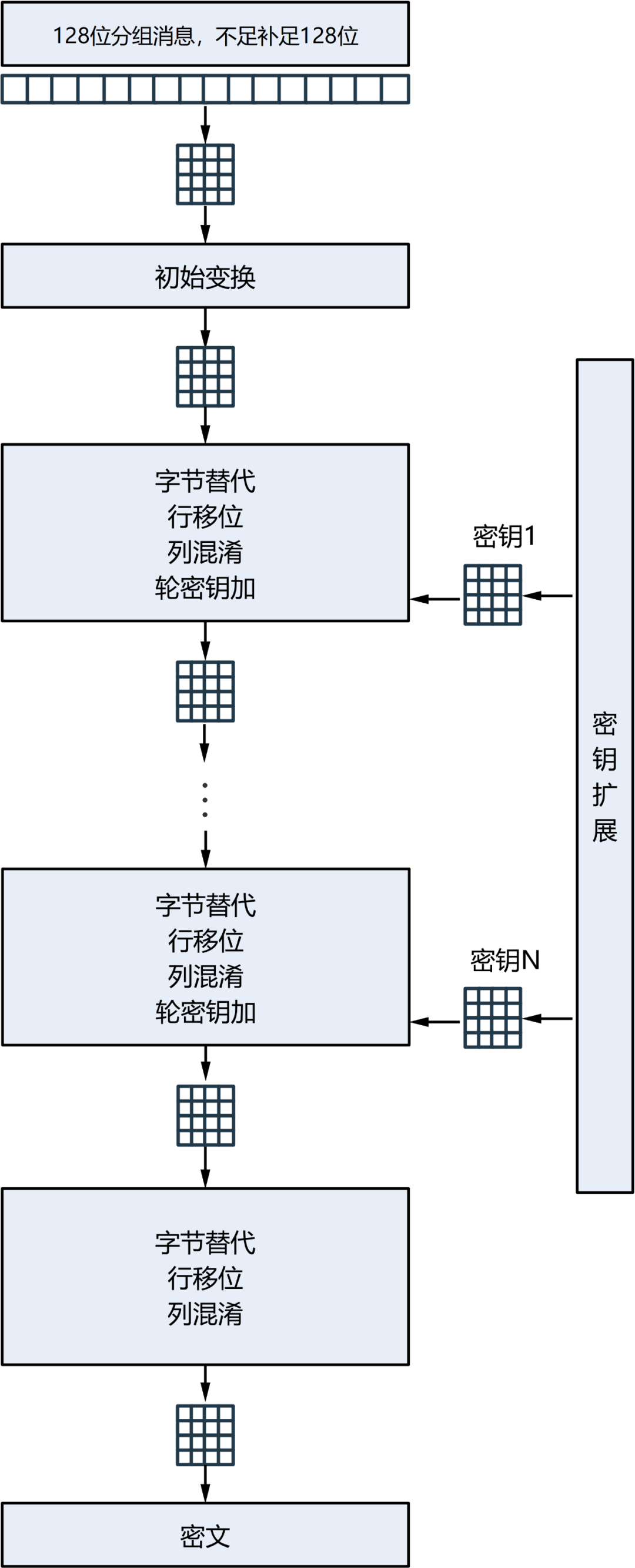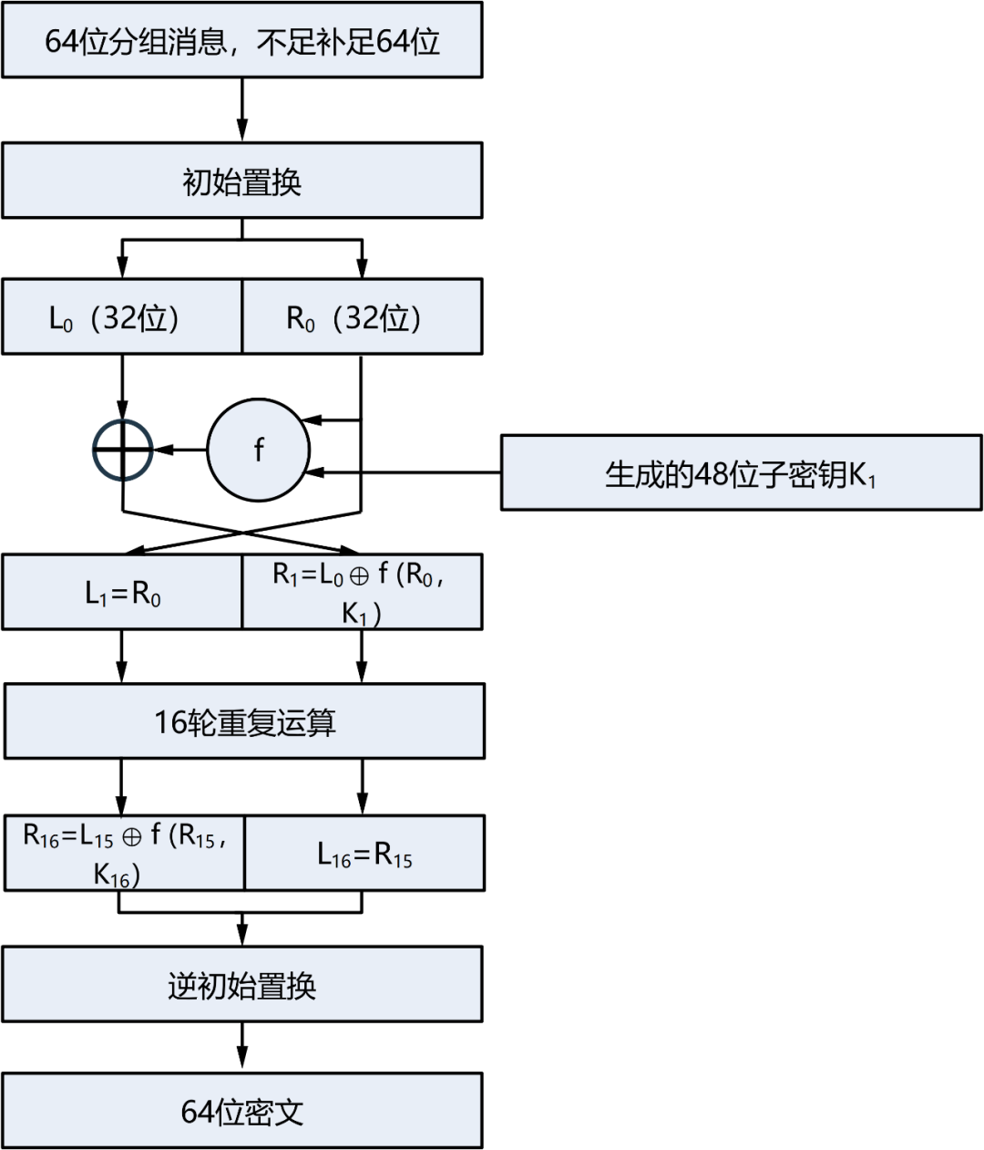 DES(数据加密标准)是1972年美国IBM公司研制的对称密码体制加密算法,1977年被美国联邦政府的国家标准局确定为联邦资料处理标准(FIPS),并授权在非密级政府通信中进行使用。其使用的密钥长度为56比特,可生成16个子密钥。DES按照64位对消息分组后,与子密钥进行迭代运算,生成密文。然而随着计算机计算能力的提高,DES密钥过短问题成为了安全隐患,美国政府需要寻找其替代方案。