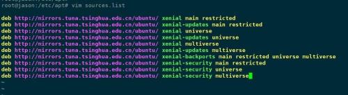 5、用vim打开source.list,按i键进入编辑模式 把要修改的源地址粘贴进来, 然后按esc进入命令模式, 键入 :wq保存退出(不懂vim如何操作的可以先百度下如何使用vim)