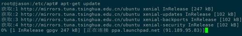 6、最后执行apt-get update就可以了(因为刚才切换到root用户, 所以不用在命令前加sudo)