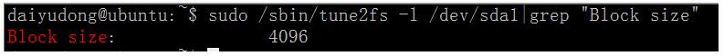 sudo /sbin/tune2fs -l /dev/sda1|grep "block size" |